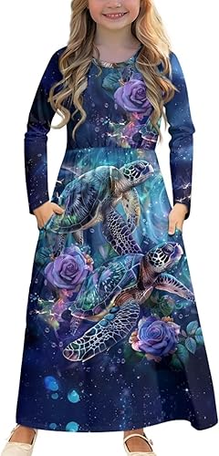 DESIGN FEATURING✿- Casual style, long sleeve, crewneck, A-line, elastic at waist, maxi length, pullover dress. Round neck design, easy to wear and take off. This is a comfy light weight girls skirts, regular fit, not very thick but perfect for spring, fall and winter.