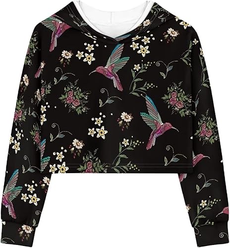 Upetstory Fashion Crop Top for Girls Kids Cropped Shirt Hoodies Sweatshirt Outfit 5-14 Years(Hummingbird,7-8 Years)