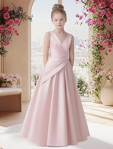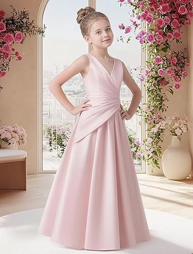 Satin flower girl dress features: sleeveless flower girl dress, girls ball gown with blowknot, backless pageant dresses for girls,maxi long prom dress for girls,bowknot girls birthday party dress, first communion dress, girls daddy daughter dance dress, will let your girl enjoy the fun of twirling; zipper back ensures a good and easy wearing and off,this girls princess dress will show your girl's charming demeanor with every step.