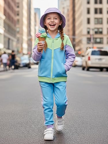 The toddler girls hooded jogger set featuring a color-block sweatshirt and sweatpants.The hoodie is designed with a zipper and includes two side pockets for hands-free. Features an elastic waistband at the bottom,eay to put on and off. This casual style remains timeless, ensuring your cute baby girl will love it.
