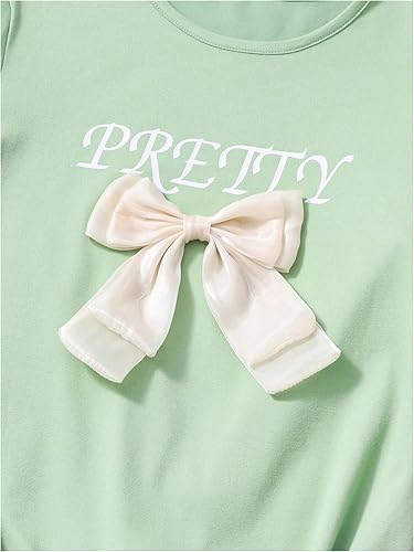 2 Pcs Clothing Set, Summer Outfits, Going Out Outfits, Teen Girl Clothes, Round Neck, Elastic Waist, Raw Trim, Bow Shirts with Denim Pants Set