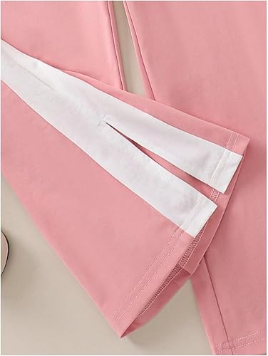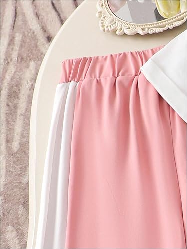 Cute Clothing Sets for Young Girls, Summer Outfits, Going Out Sets, Bow Shirts with Casual Pants, Short Sleeve, Side Slit, Elastic Waist, Contrast Trim