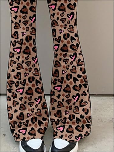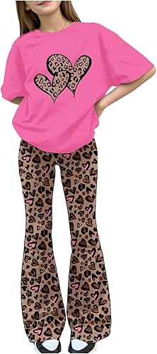Casual outfits, cheetah print, short sleeve, round neck, high waist, bell bottoms, flared leg, slim fit, two piece outfit