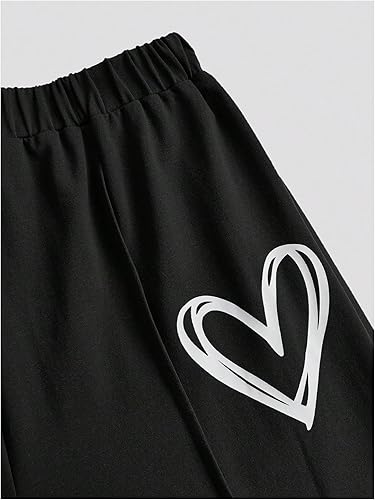 Round Neck, Drop Shoulder, Elastic Waist, Straight Leg, Loose Tee Tops with Long Trousers