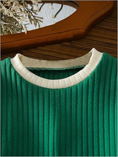 Long Sleeve, Drop Shoulder, Contrast Trim, Elastic Waist, Straight Leg, Slit Hem, 2 Pcs Casual Clothing Sets