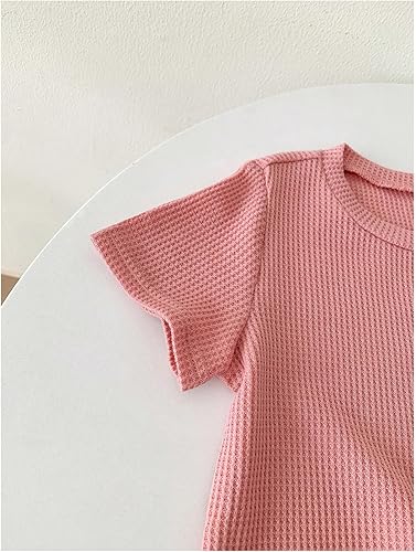 Letter Patched, Short Sleeve, Elastic Waist, Straight Leg, 2 Pcs Casual Matching Sets
