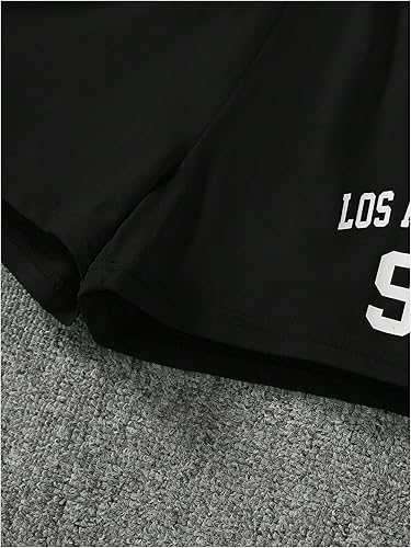 Sport workout outfits, athletic outfits, number shirt, letter print, crew neck, elastic waist, jersey shirts, crop top, loose fit