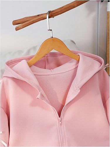 Casual hoodies, teen girl clothes, spring fall clothes for girls, zipper front, bow tie, long sleeve, drop shoulder, hooded neck, loose fit