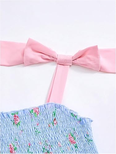 Cute dresses, elegant dresses, floral print, ruffle hem, tiered layered, sleeveless, knot strap shoulder, shirred, midi dress
