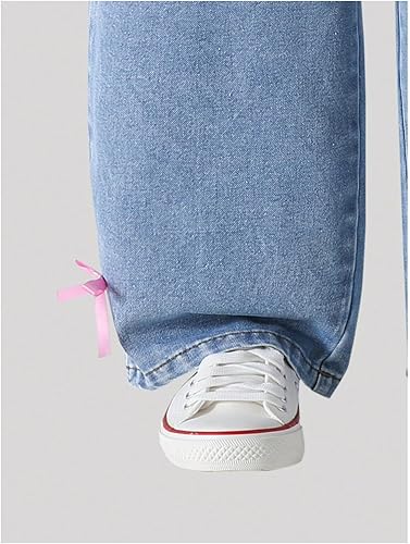 Kawaii Jeans, Teen Girl Clothes, Baggy Trousers for Young Girls, Elastic Waist, Wide Leg, Bow Tie, Casual Style