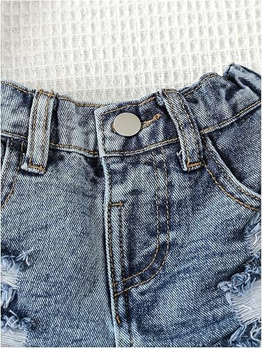Toddler girl clothes, jean shorts for young girls, summer shorts, streetwear shorts, distressed ripped, raw trim, slant and back pockets, button and zipper fly, straight leg