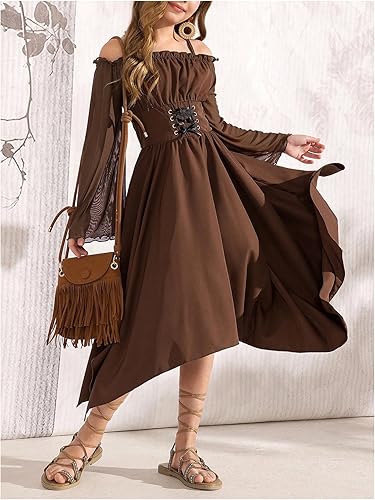 Ruched Bust, Spaghetti Strap, Long Sleeve, Renaissance Dress for Tween Girls, Elegant Birthday Dress