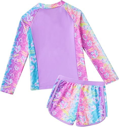 Design: Girls 2 Piece swimsuits, long sleeve half zip rashguard shirt with shorts. Shorts can protect kids better, and the zipper design makes it easy for child to wear and take off.