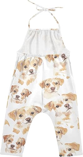 Watercolor Dog Toddler Girl Clothes Sleeveless Romper Jumpsuit for Girls Summer One Piece Romper Pants Size 1-6T(Multicolor,1T)
