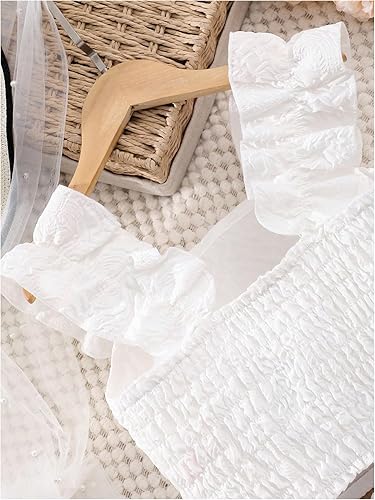 Features: 2 piece shorts set for girls, designed with square neck sleeveless shirred crop tank top and button front shorts