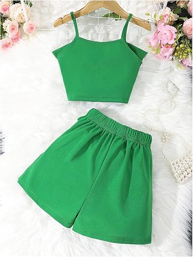 Features: 2 piece outfits for girls, bowknot spaghetti strap cami top and elastic waist skorts, cute skirt set