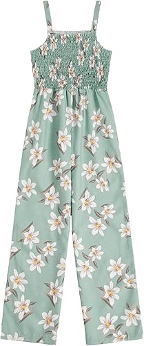 Features: floral print, shirred, sleeveless, high waist, wide leg