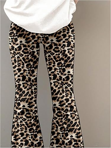 Features: 2 piece outfits for girls, leopard bow print crewneck t-shirt and bell bottom pants set, matching pants outfits
