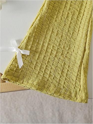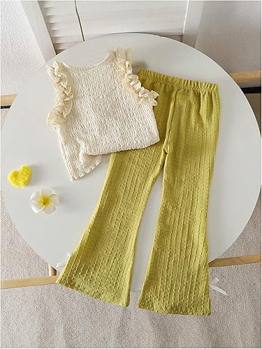 Features: 2 piece set for toddler girls, floral appliques, ruffle tank top and bow bell bottom pants set, textured clothes outfits