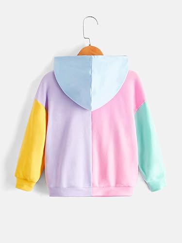Features: color block, hooded, long sleeve, kangaroo pocket, cute sweatshirts