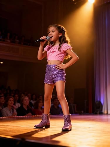 Sparkly Stretch Fabric: Features shimmering sequin material with high elasticity for vibrant style and flexible movement; retains shape after stretching to ensure a perfect fit during play or dance