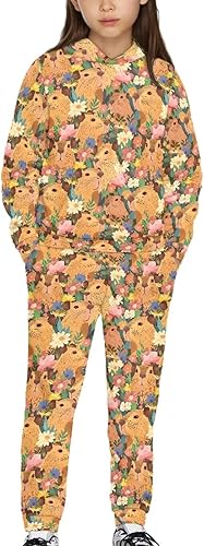 2 Pieces Sweatsuit Set : This sweatsuits include a long sleeve hooded sweatshirt top and a joggers pants which are also a casual and loose fitting style and all with allover printing that is popular among kids
