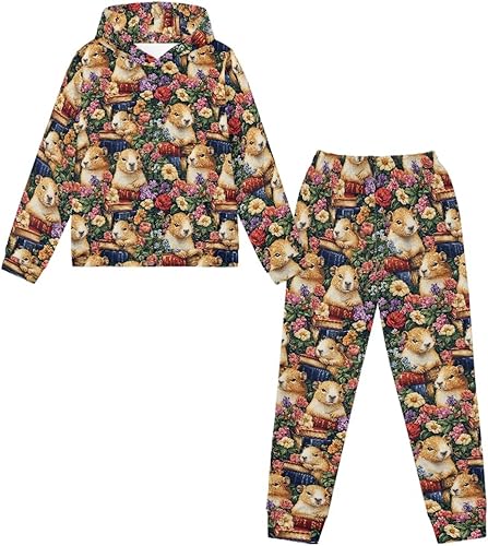 Graphic Paint Hoodies and Sweatpants Set: Allover print kids clothing set has a variety of themed patterns, such as axolotl, dragon, snake, horse, cat, puppy dog, ocean animals etc; Fashion sweatsuit set will make your kids more attractive and eye-catching