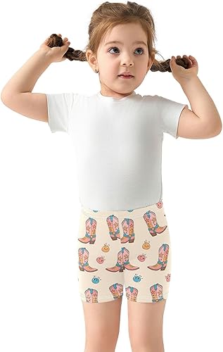 Western Cowboy Beige Girls Bike Shorts Toddler Soft Cotton Under Dress Cartwheel Shorts(Multi-western Cowboy Beige,5T)