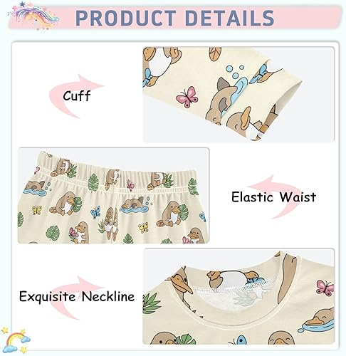 Feature: Adorable animal print design with vibrant colors, making this long sleeve pants pajama set both fun and fashionable, ideal for little who love playful styles.