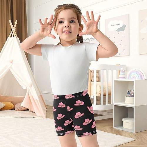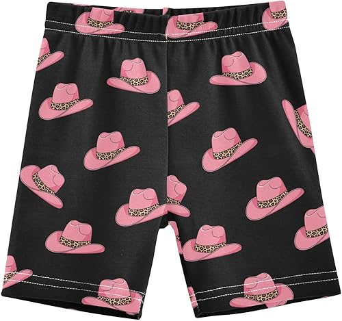 Western Cowboy Hats Black Girls Bike Shorts Toddler Soft Cotton Cartwheel Under Dress Dance Shorts(Multi-western Cowboy Hats Black,10 Years)