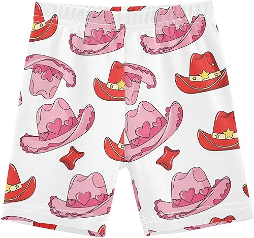 Western Cowboy Pink Hat Girls Bike Shorts Toddler Soft Cotton Cartwheel Under Dress Dance Shorts(Multi-western Cowboy Pink Hat,10 Years)