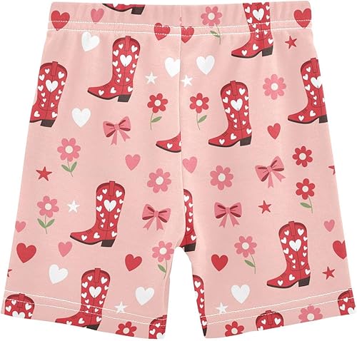 Western Cowboy Pink Hearts Girls Bike Shorts Toddler Soft Cotton Active Biker Shorts(Multi-western Cowboy Pink Hearts,6 Years)
