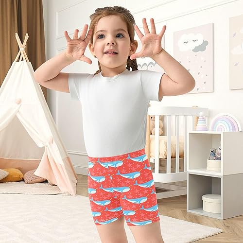 Whale Red Girls Bike Shorts Toddler Soft Cotton Active Biker Shorts(Multi-whale Red,6 Years)