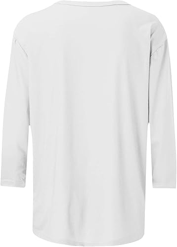 White 3/4 Length Sleeve Tops for Teen Girls Summer Fall Crewneck Graphic Loose Fit Happy Holiday Christmas Lounge Tops Shirt Blouses Womens 2025 Clothes Trendy XL