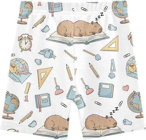 White Capybara Girls Bike Shorts Toddler Soft Cotton Active Under Dress Shorts(Multi-white Capybara,10 Years)