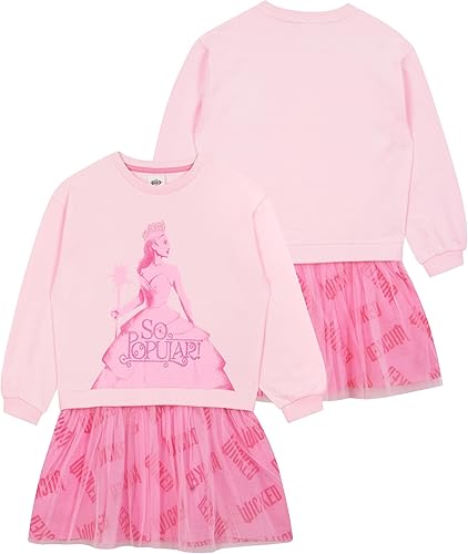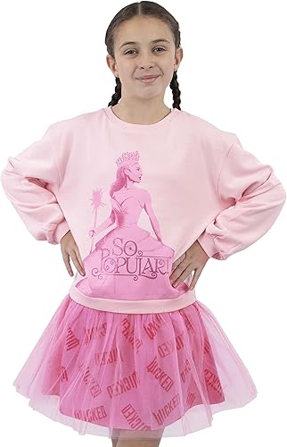 Enchanting Glittery Design: Featuring a cozy pink Wicked sweater with Glinda the Good Witch and the phrase “So Popular!” in glittery pink writing, this girl dress is a magical blend of comfort and style
