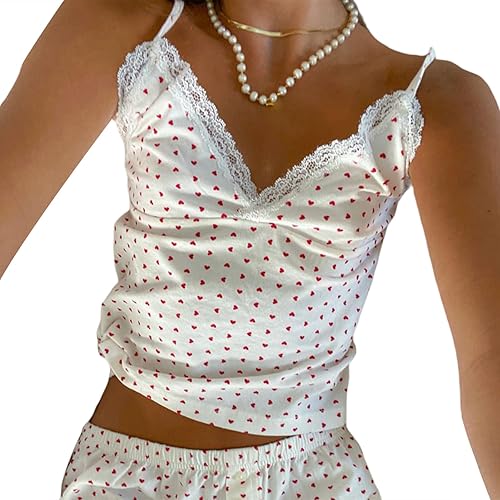 DESIGN: Women floral pajama set have sleeveless cami crop tops, slim fit, spaghetti straps, matching elastic high waist shorts. Cute matching pj set, aesthetic pajamas, cami pajama set for women, cami and shorts pajama set.