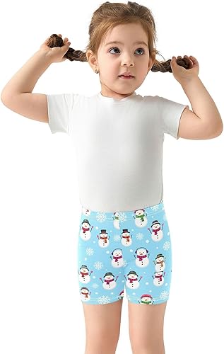 Winter Snowman Blue Girls Bike Shorts Toddler Soft Cotton Cartwheel Under Dress Dance Shorts(Multi-winter Snowman Blue,10 Years)