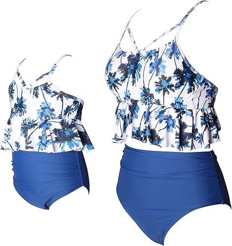 Design: Removable padded bra, adjustable shoulder straps.Ruched ruffled flounce bikini top, high waisted with tummy control bikini bottom can better hide your tummy and makes you look slimmer;Unique design make your daughter cute and adorable.Perfect for Beach Holiday, Pool Party, Bathing and Swimming.Hand wash or Machine.
