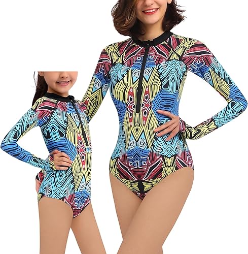 Mom And Daughter Swimsuits: The long sleeve swimsuit coming with cute patterns can be used as mom and daughter matching swimsuit; When mother and daughter wear the twin swimsuit, it would be super fun and you would get lots of compliments; Due to the size for women and girls swimsuit is different, please order separately