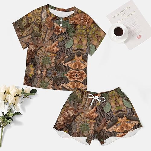 ❀-AuHomea Women Pajamas Set's Fabric: Soft material: The face fabric is stretchy, soft, lightweight, breathable and comfortable to wear as sleepwear/loungewear at home in hot days.