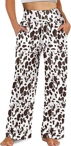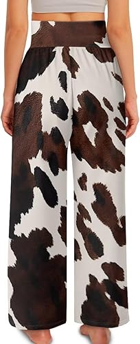 Women's Wide Leg Pants, Elastic High Waist Harem Pants Clothes Wide Bottom with Pockets for Yoga(Brown Cow,3X-Large)