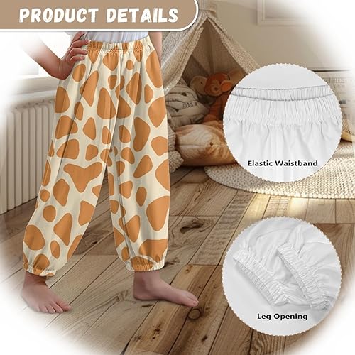 Xhuibop Pants for Girls Sweatpants Skin Friendly Loose Legged Bloomers Breathable Casual Joggers Pants(Giraffe,Medium)