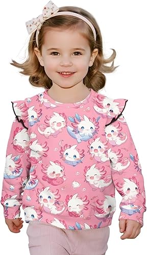 Xhuibop Toddler Fall Sweatshirt Ruffle Sleeve Design Graphic Tees Toddler Girl Long Sleeve Shirts Age 1-8Y(Axolotl,1-2T)