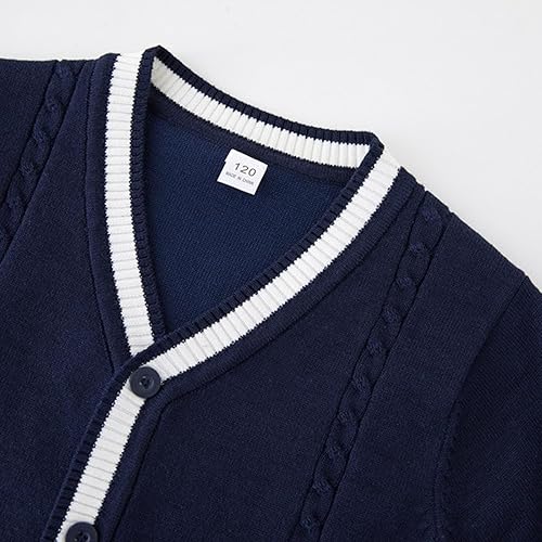 Xiaojmake Boys Girls Cardigan Sweater School Uniform Color Block V-Neck Button Down Sweaters Soft Cotton Knit Outerwear 3-13Y(Navy,5-6 Years)