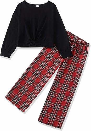 Design:Our teen girl clothes features a stylish twist front pullover tops paired with classic flannel plaid pants,the included belt adds a touch of sophistication,and this cute outfits for girls allows for ease of movement, making it ideal for active play.Relaxed fit ensure your girls comfort and style.