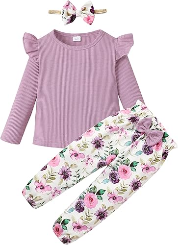 GREAT GIFT: 1Pc flower long sleeve top + 1Pc long pant+1Pc flower headband.