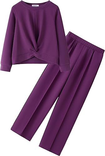 Fur description: Girls Twist Front Tops and Wide Leg Pants Sweatsuits Set
