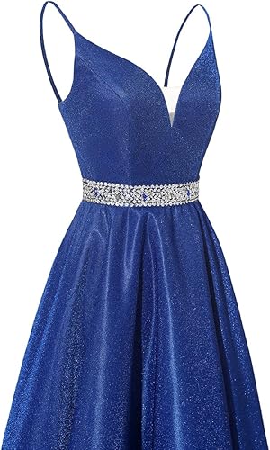 Features: Long sparkling prom dress for women & junior, v-Neck, sleeveless, spaghetti straps, A-Line empire waist, maxi floor length, adjustable corset lace up, side pockets, built-in-bra and fully lined with boned will make you look more elegant and glamourous at the party.