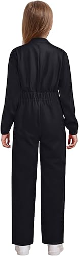 YiZYiF Girls Stand Collar Jumpsuit Romper Coverall One Piece Mechanic Boiler Suit Straight Leg Cargo Pant Black 10 Years